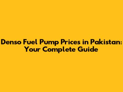 Denso Fuel Pump Prices In Pakistan: A Comprehensive Guide
