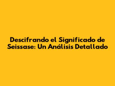 Descubriendo El Significado Profundo De Seissase