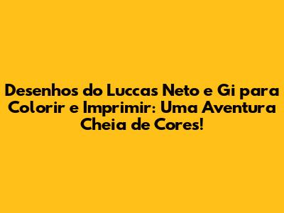 Com os desenhos do Luccas Neto e Gi para colorir, a diversão não tem limites. As crianças podem soltar a imaginação, criando mundos fantásticos e dando vida aos personagens. Seja com lápis de cor, canetinhas ou giz de cera, o importante é se divertir e deixar a criatividade fluir. Colorir também é uma excelente oportunidade para as crianças aprenderem sobre cores, formas e combinações, desenvolvendo suas habilidades artísticas de forma divertida e interativa. E não se esqueçam dos pais e responsáveis, que podem participar da brincadeira, criando momentos especiais e fortalecendo os laços familiares. Afinal, a magia de colorir está em cada traço, em cada cor, e em cada sorriso.