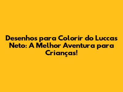Com os desenhos para colorir do Luccas Neto, a diversão é garantida. As crianças vão adorar colorir seus personagens favoritos e criar suas próprias histórias. E vocês, pais e responsáveis, vão adorar ver a alegria e a criatividade de seus filhos. Então, não percam tempo! Comecem agora mesmo a colorir e a se divertir!