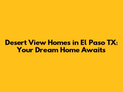 Desert View Homes In El Paso TX: Your Dream Home Awaits