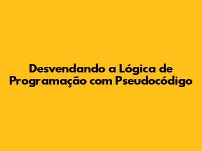 Desvendando A Lógica De Programação Com Pseudocódigo