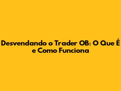 Desvendando O Trader OB: O Que É E Como Funciona