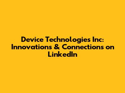 Device Technologies Inc: Innovations & Connections On LinkedIn