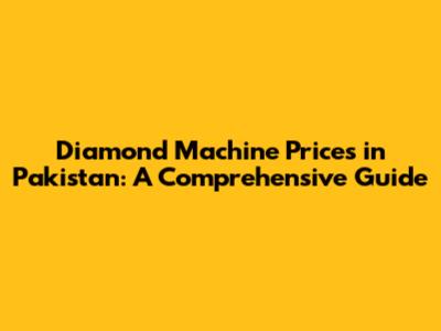 Diamond Machine Prices In Pakistan: A Comprehensive Guide