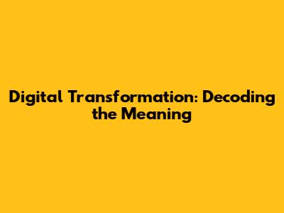 Digital Transformation: What Does It Really Mean?