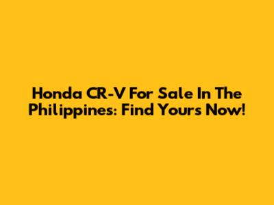 Honda CR-V For Sale In The Philippines: Find Yours Now!