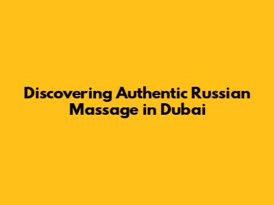 Discovering Authentic Russian Massage In Dubai