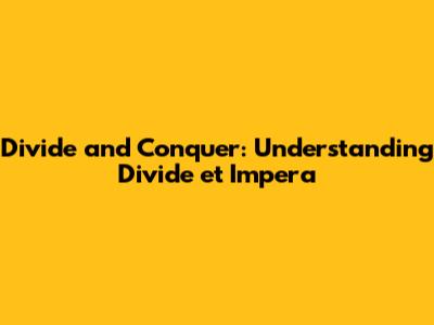 Divide And Conquer: Understanding 'Divide Et Impera'