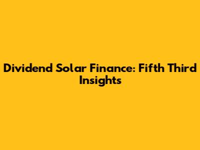 Dividend Solar Finance: Fifth Third Insights