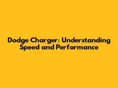 Dodge Charger: Understanding Speed And Performance
