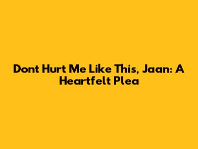 Don't Hurt Me Like This, Jaan: A Heartfelt Plea