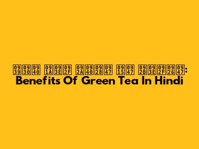 हरी चाय पीने के फायदे: Benefits Of Green Tea In Hindi