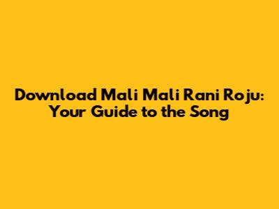 Download 'Mali Mali Rani Roju': Your Guide To The Song