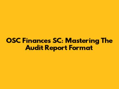 OSC Finances SC: Mastering The Audit Report Format