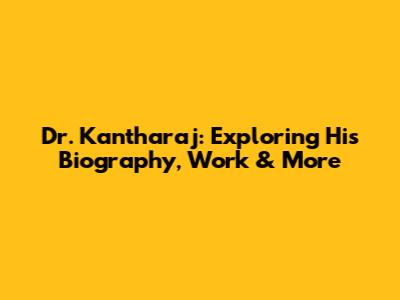 Dr. Kantharaj: Exploring His Biography, Work & More
