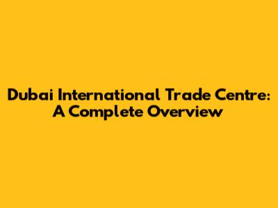 Dubai International Trade Centre: A Complete Overview