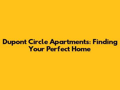 Dupont Circle Apartments: Finding Your Perfect Home