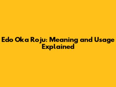 Edo Oka Roju: Meaning And Usage Explained