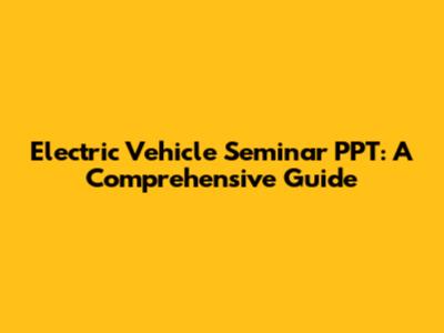 Electric Vehicle Seminar PPT: A Comprehensive Guide