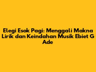 Elegi Esok Pagi Ebiet G Ade lirik adalah sebuah karya musik yang sangat berharga. Lagu ini tidak hanya indah secara musikal, tetapi juga sarat dengan makna yang mendalam. Liriknya yang puitis, aransemen musik yang indah, dan pesan-pesan yang relevan dengan kehidupan membuat lagu ini tetap relevan hingga saat ini. Melalui lagu ini, Ebiet G Ade berhasil menciptakan sebuah karya yang abadi dan menginspirasi banyak orang. Bagi kamu yang belum pernah mendengarkan lagu ini, segera dengarkan dan rasakan getaran emosinya. Bagi kamu yang sudah sering mendengarkan, mari kita resapi kembali makna yang terkandung di dalamnya. Semoga lagu ini dapat memberikan inspirasi dan semangat bagi kita semua dalam menjalani hidup.