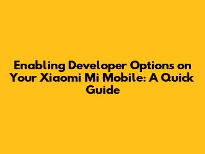 Enable Developer Options On Xiaomi Mi Mobile: A Quick Guide