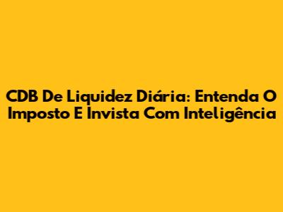 CDB De Liquidez Diária: Entenda O Imposto E Invista Com Inteligência