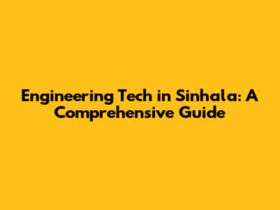 Engineering Tech In Sinhala: A Comprehensive Guide