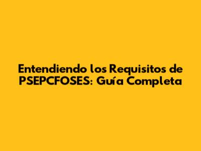 Entendiendo Los Requisitos De PSEPCFOSES: Guía Completa