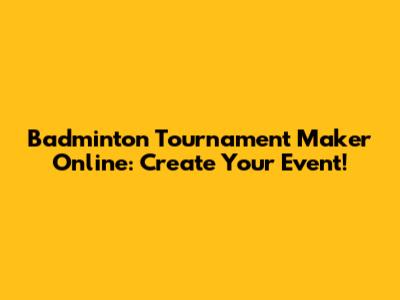 Badminton Tournament Maker Online: Create Your Event!
