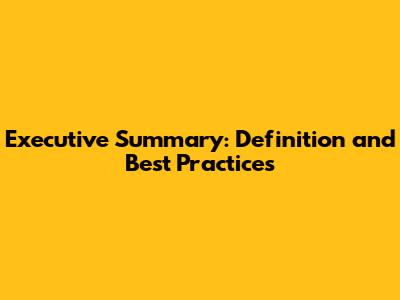 Executive Summary: Definition And Best Practices