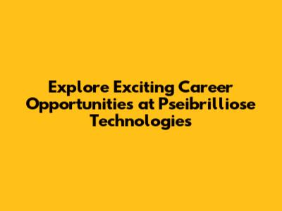 Explore Careers At Pseibrilliose Technologies