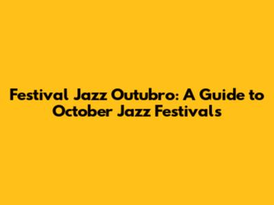 Festival Jazz Outubro: A Guide To October Jazz Festivals
