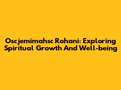Oscjemimahsc Rohani: Exploring Spiritual Growth And Well-being