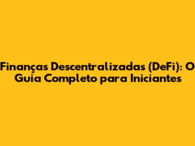 Finanças Descentralizadas (DeFi): Guia Completo Para Iniciantes