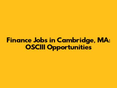 Finance Jobs In Cambridge, MA: OSCIII Opportunities
