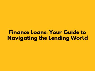 Finance Loans: Your Guide To Navigating The Lending World