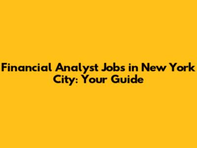 Financial Analyst Jobs In New York City