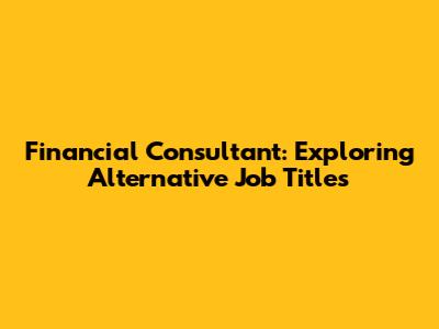 Financial Consultant: Exploring Alternative Job Titles