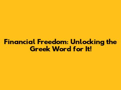Financial Freedom: Unlocking The Greek Word For It!