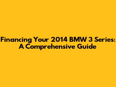 Financing Your 2014 BMW 3 Series: A Comprehensive Guide