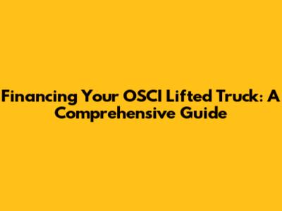 Financing Your OSCI Lifted Truck: A Comprehensive Guide