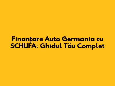 Finanțarea auto în Germania cu SCHUFA poate fi un proces solicitant, dar cu informațiile corecte și o planificare atentă, poți obține finanțarea necesară pentru a-ți cumpăra mașina dorită. Înțelege rolul SCHUFA, verifică-ți scorul, explorează opțiunile de finanțare și urmează sfaturile practice pentru a-ți crește șansele de succes. Nu uita, o bună pregătire este cheia succesului. Baftă la găsirea mașinii perfecte!