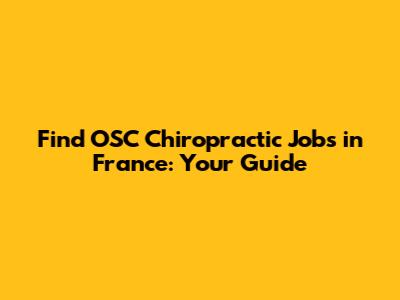 Find OSC Chiropractic Jobs In France: Your Guide