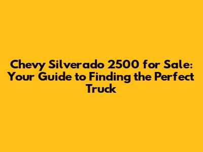 Finding Your Chevy Silverado 2500: Where to Look