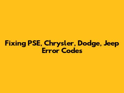 Fixing PSE, Chrysler, Dodge, Jeep Error Codes