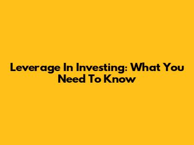 Leverage In Investing: What You Need To Know
