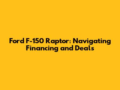 Hey everyone! If you're here, chances are you're dreaming of owning a Ford F-150 Raptor. The Raptor isn't just a truck; it's a statement. It's about conquering off-road trails, turning heads on the highway, and experiencing raw power. But let's be real, acquiring one can be a significant investment. That's where we dive into the world of Ford F-150 Raptor financing options and deals. This guide will help you navigate the financial landscape, explore your choices, and hopefully, get you closer to parking that beast in your driveway. We'll cover everything from 0% financing offers (if available) to leasing options and how to secure the best possible interest rates. Buckle up, because we're about to embark on a journey through the ins and outs of financing your dream truck.