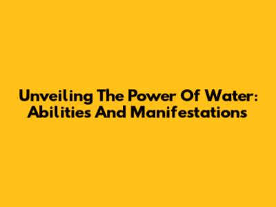 Unveiling The Power Of Water: Abilities And Manifestations