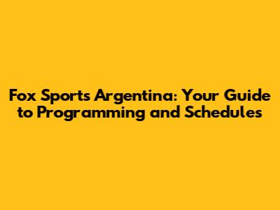 Fox Sports Argentina: Programming And Schedules